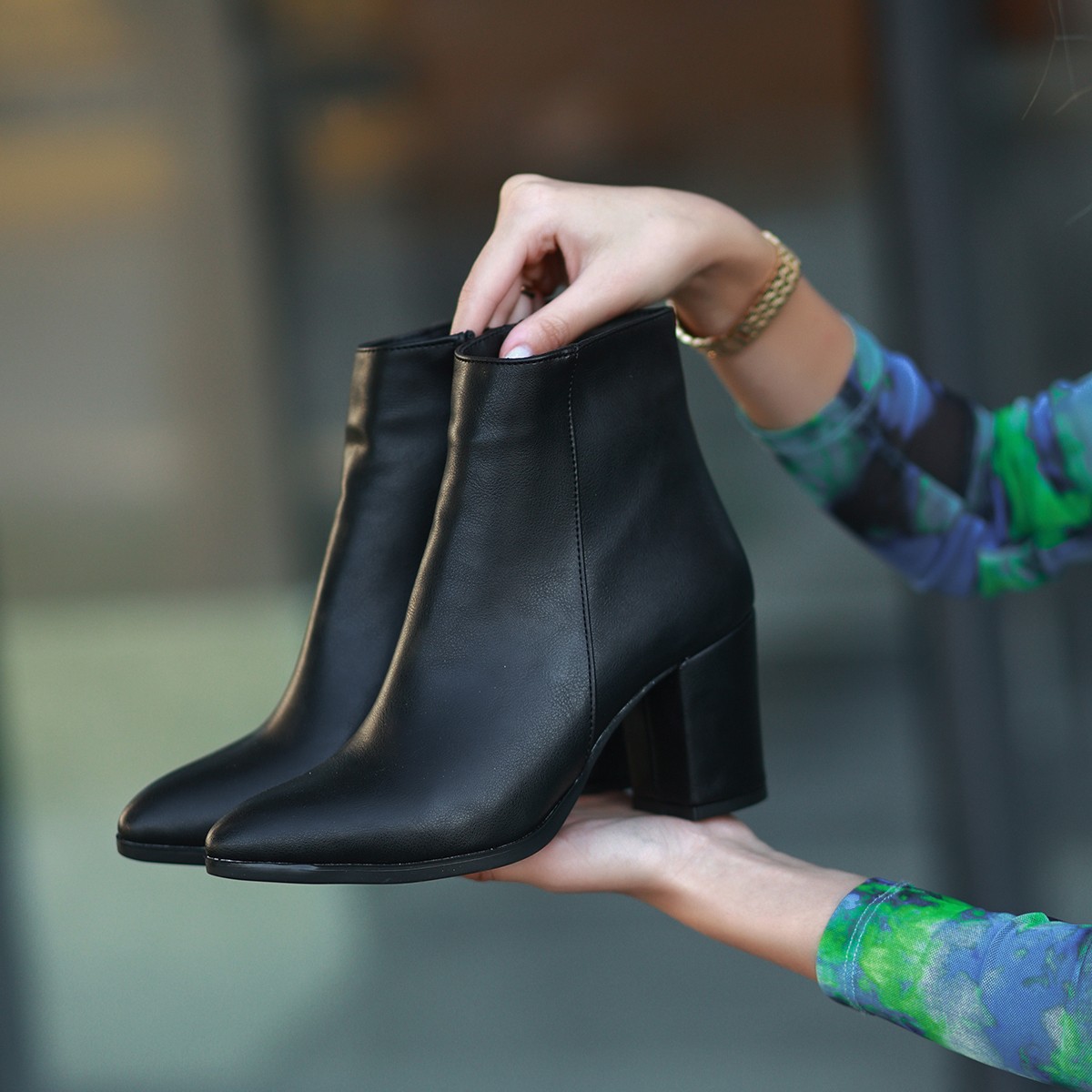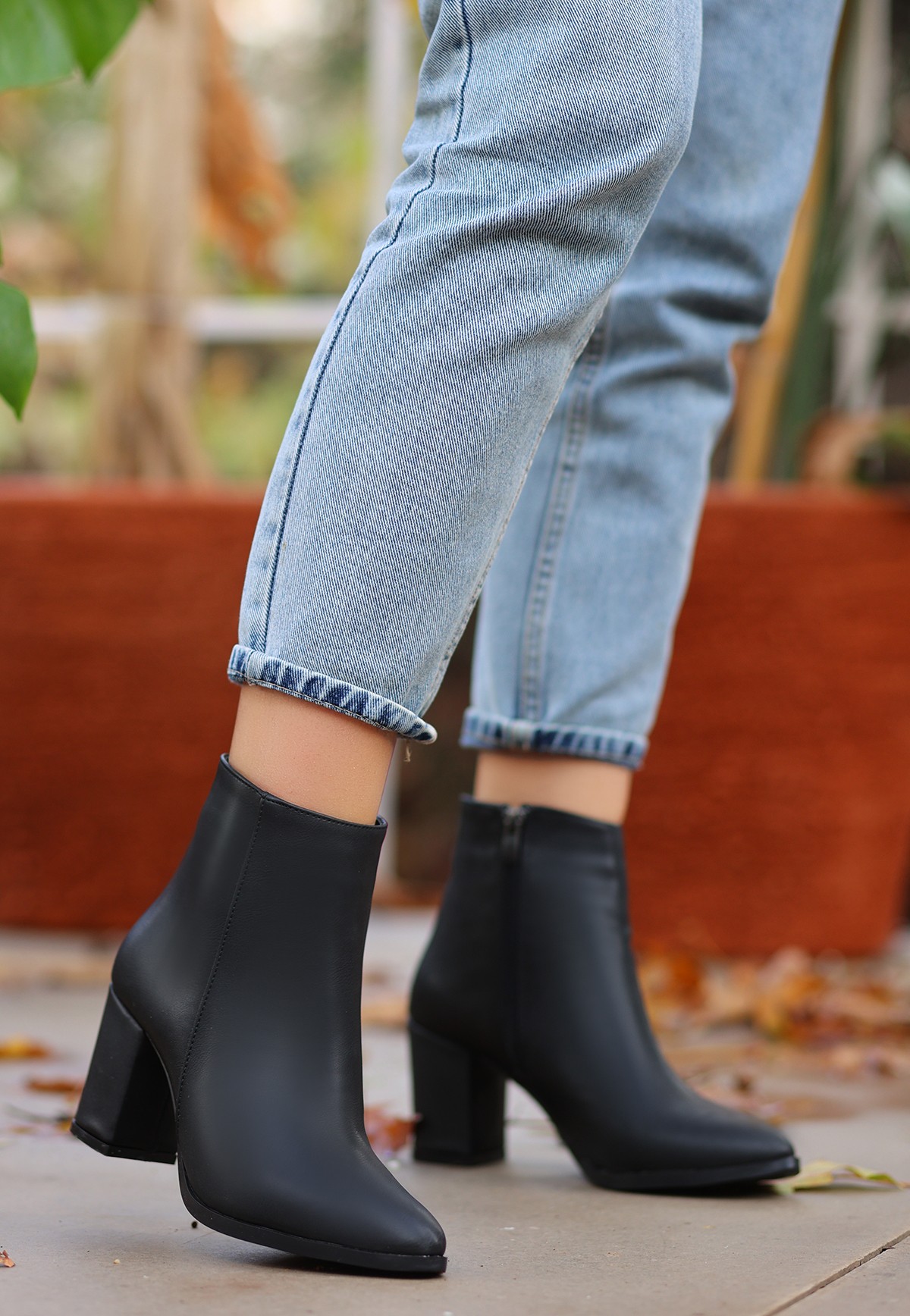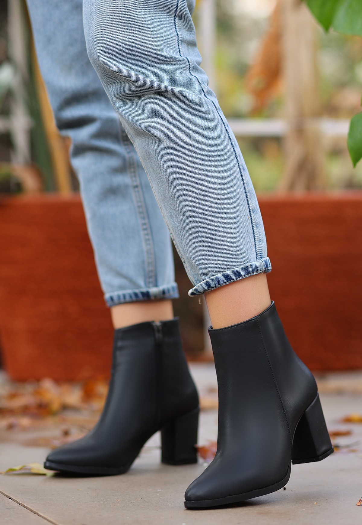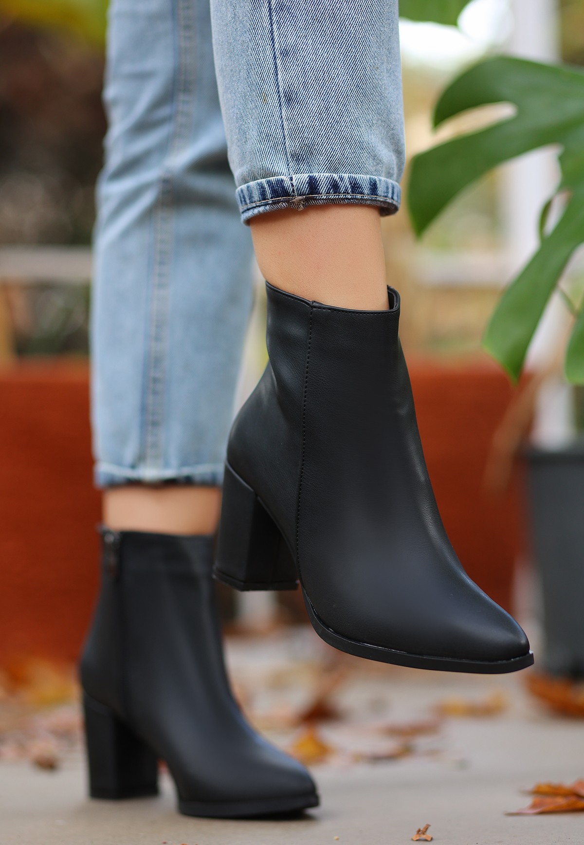 Marka Erbilden Biya Siyah Cilt Topuklu Bot