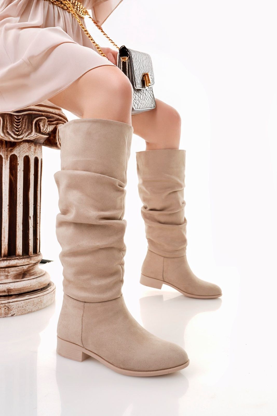 Çizme Winda Bej Süet Körüklü Çizme