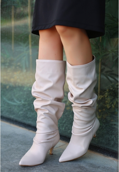 Detay: Topuklu Diz Altı Körüklü Çizme