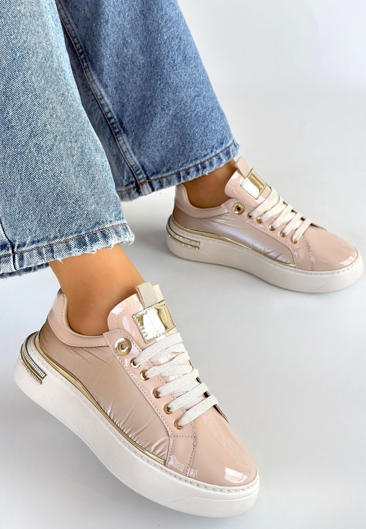 • Hley Bej Rugan Paraşüt Detaylı Bağcıklı Spor Ayakkabı