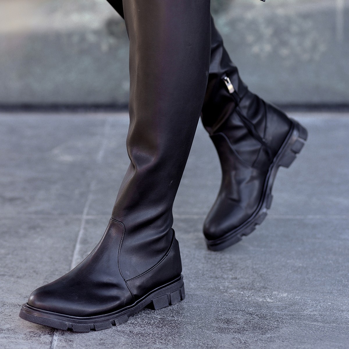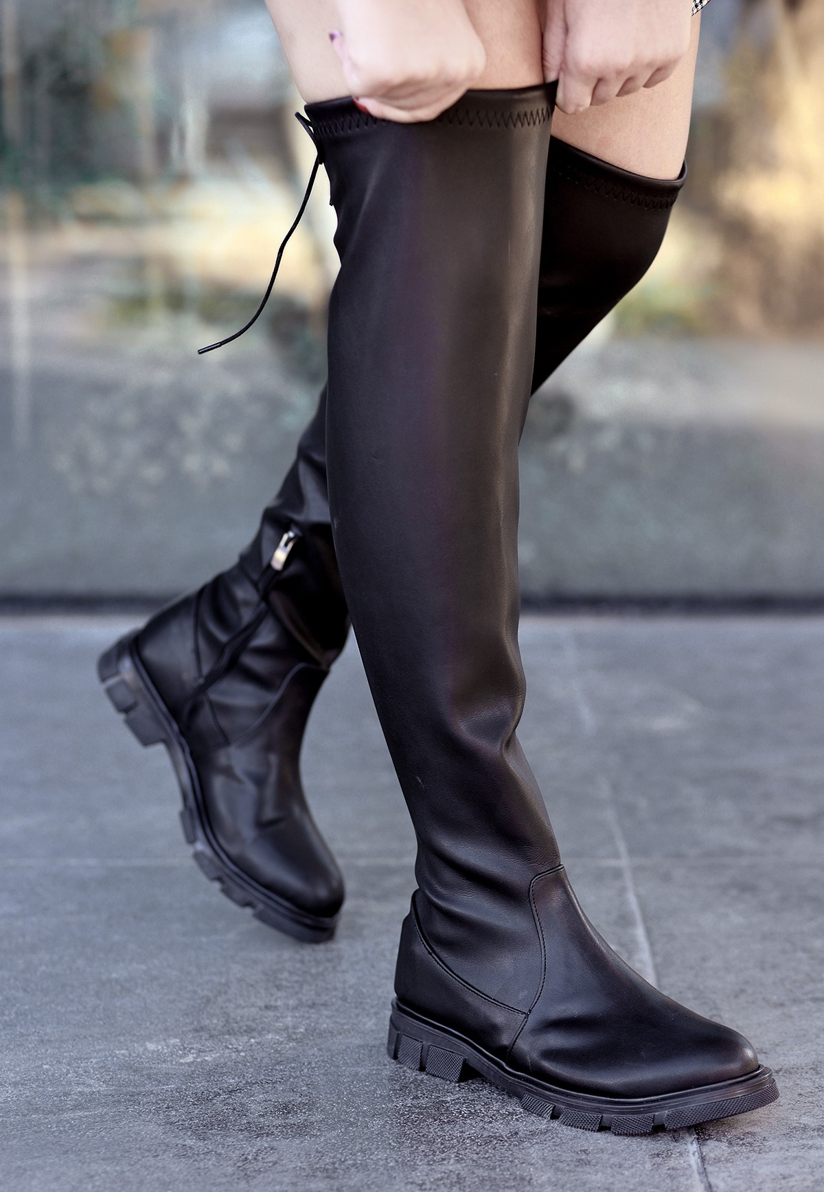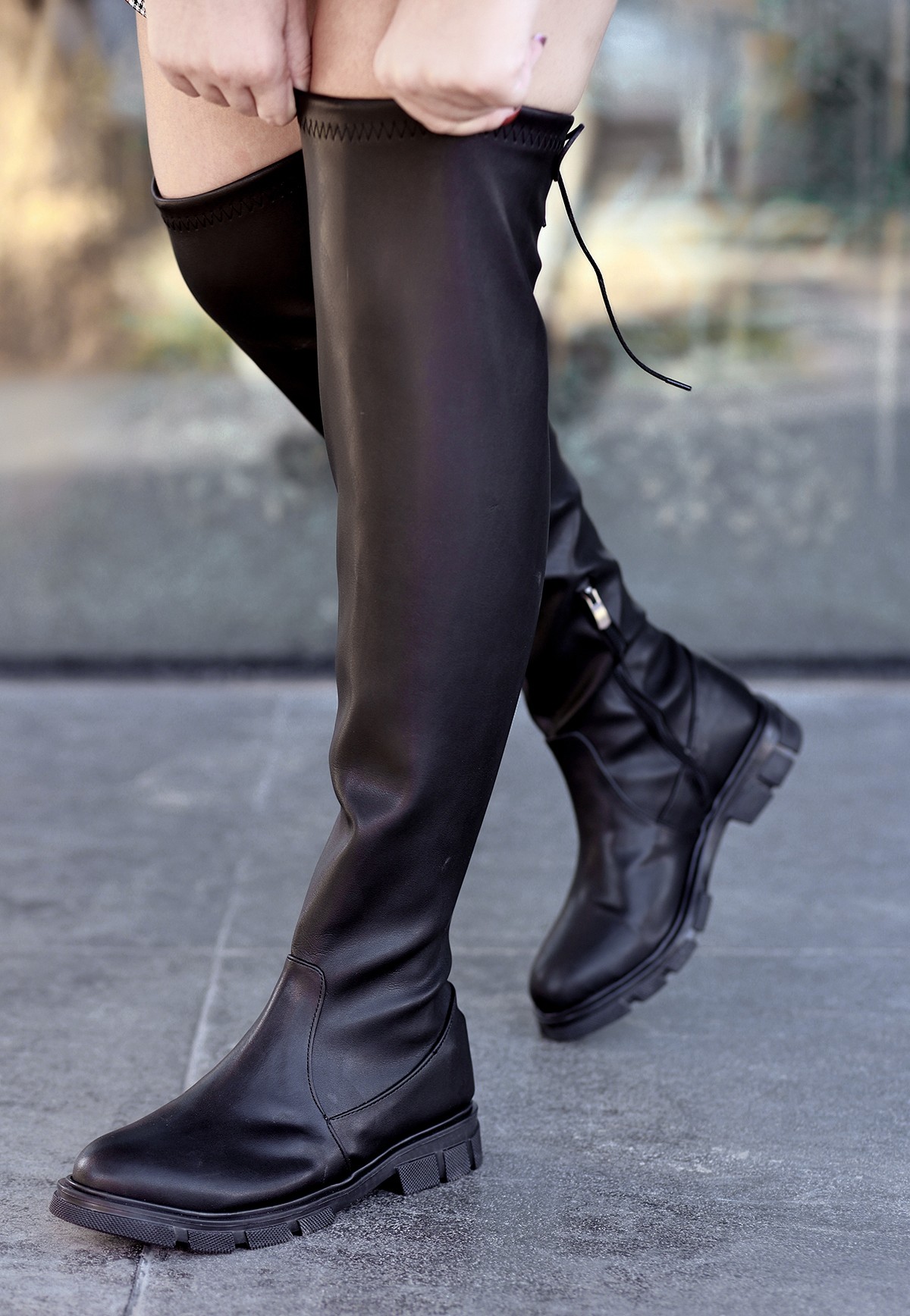 • Iyan Siyah Cilt Çorap Çizme