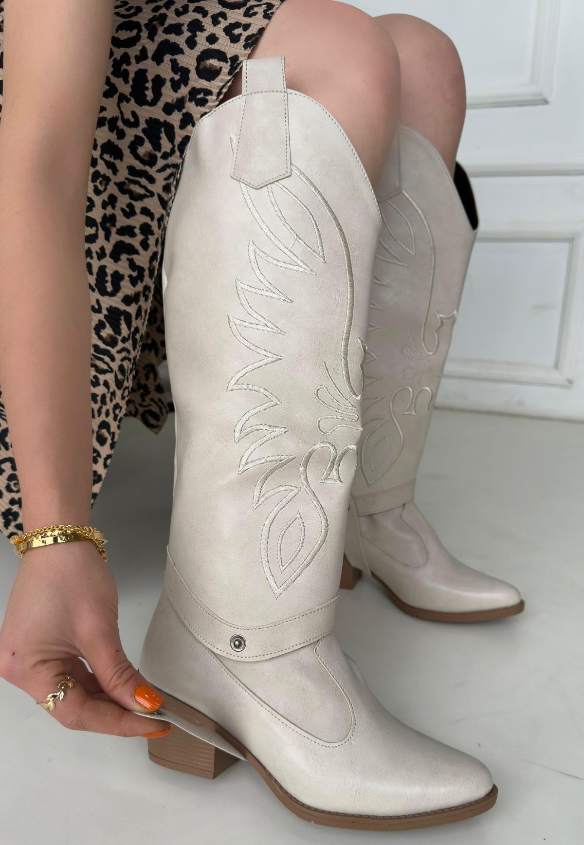 Jilla Bej Cilt Tak Çıkar Topuklu Bot Ve Çizme