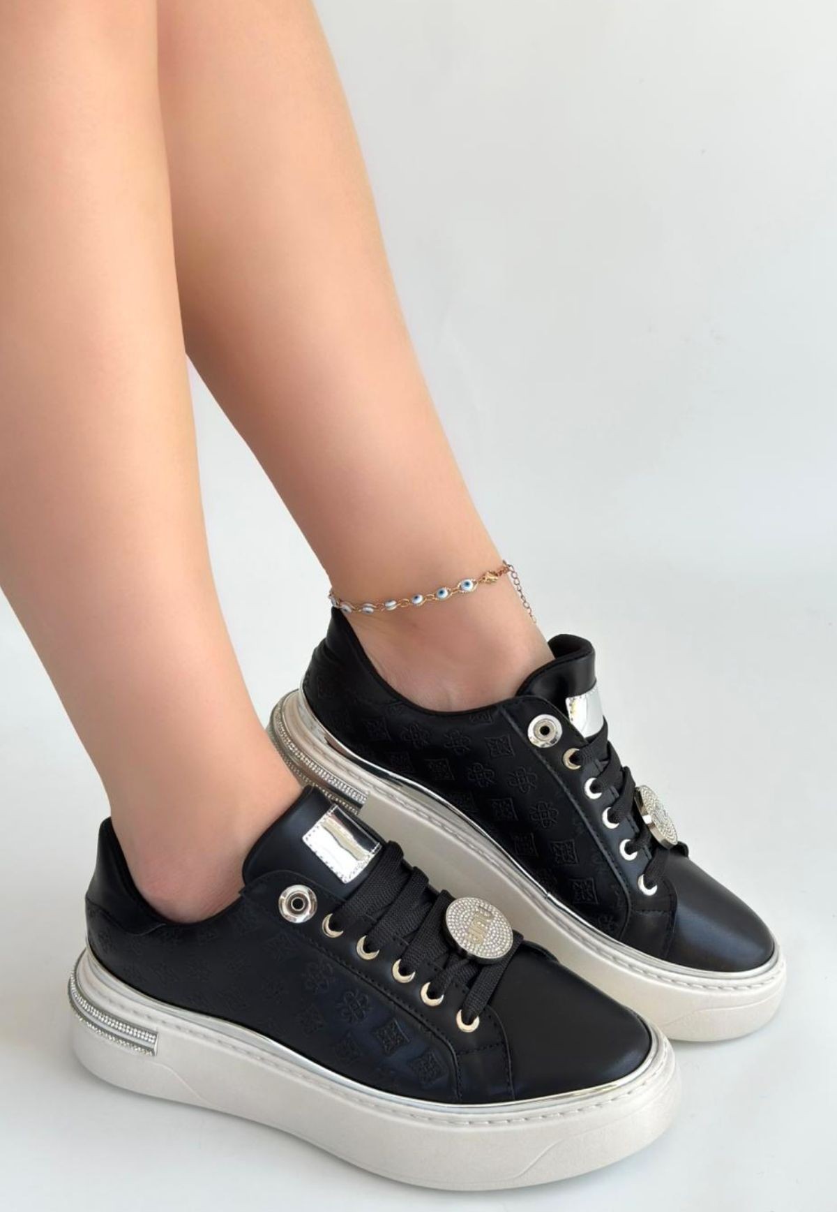 Jlar Siyah Cilt Bağcıklı Spor Ayakkabı