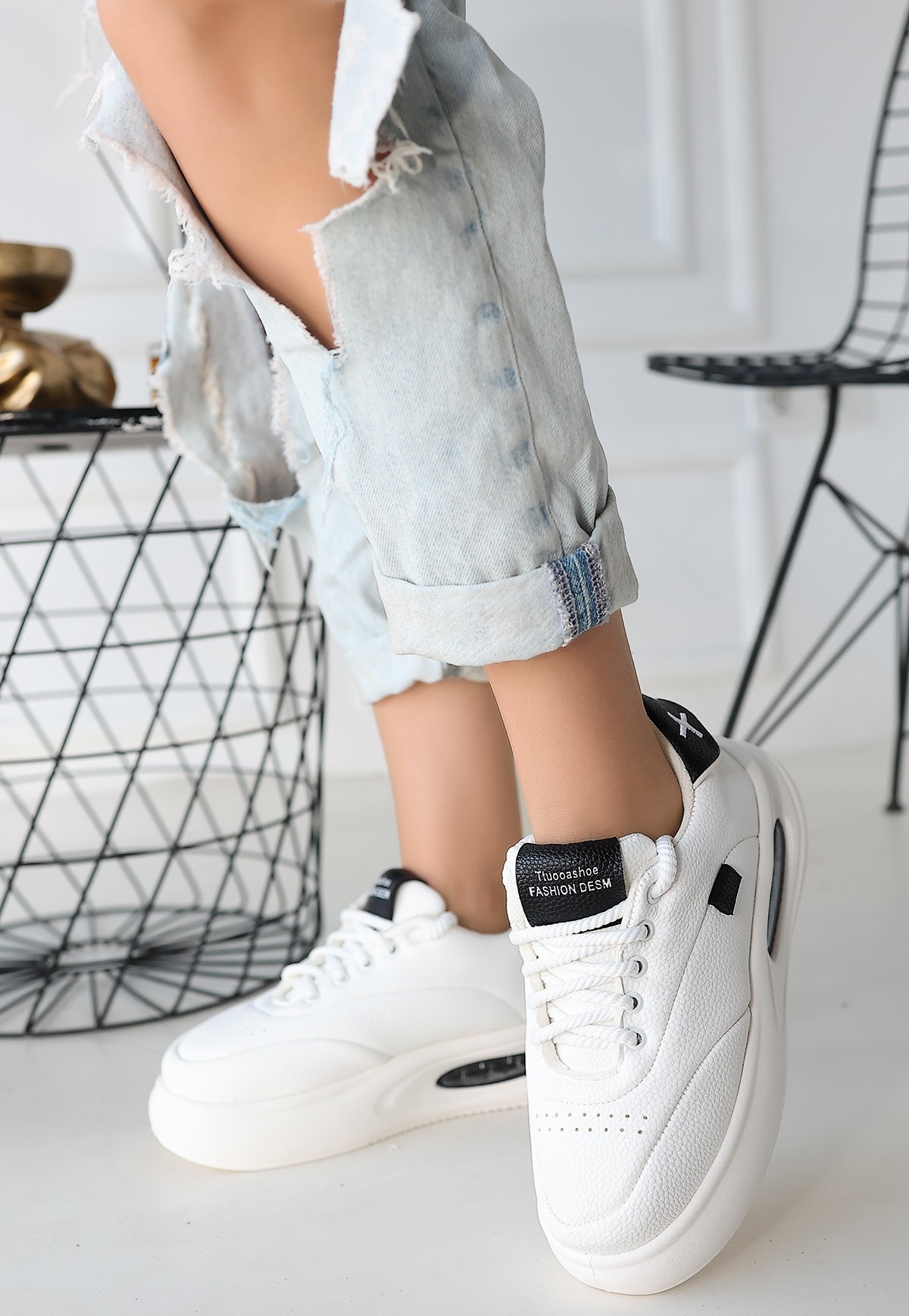 • Chris Beyaz Cilt Siyah Detaylı Bağcıklı Spor Ayakkabı