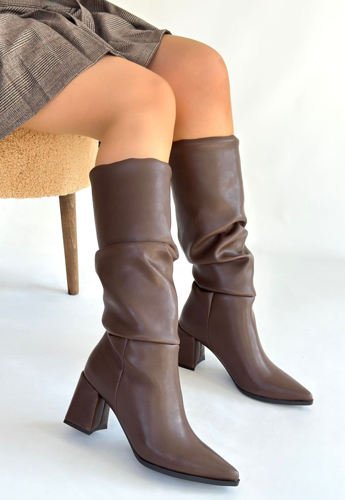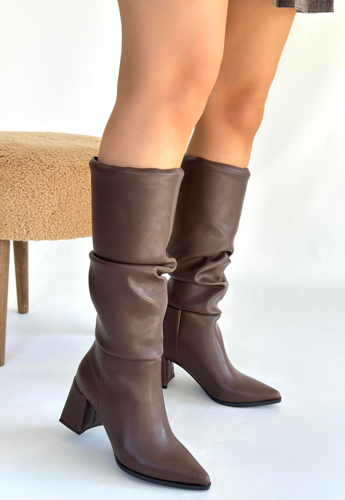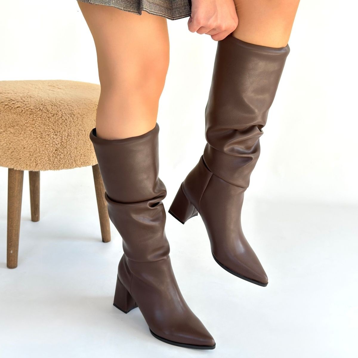 Pitay Kahverengi Cilt Körüklü Topuklu Çizme