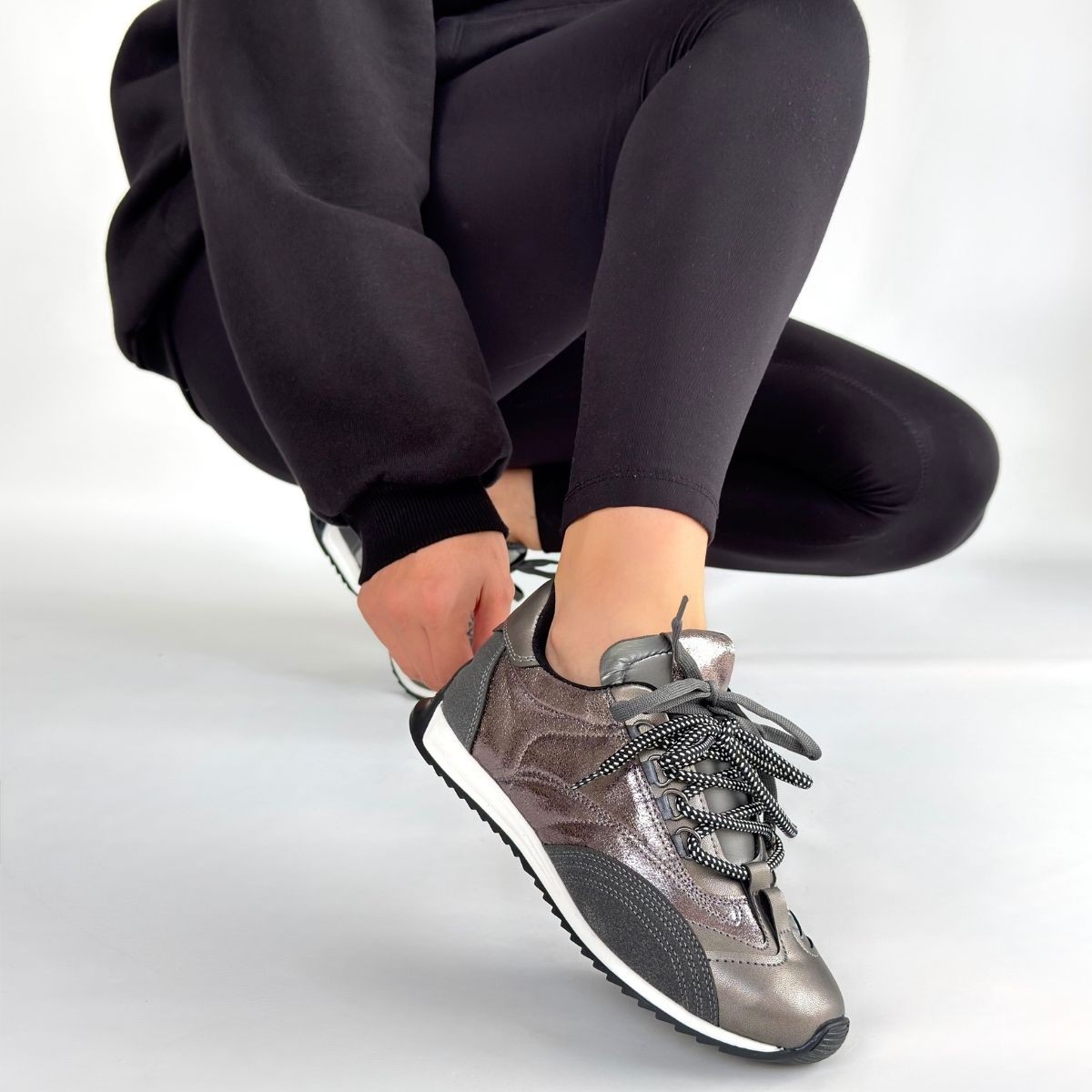 • Ranu Platin Cilt Paraşüt Detaylı Bağcıklı Spor Ayakkabı